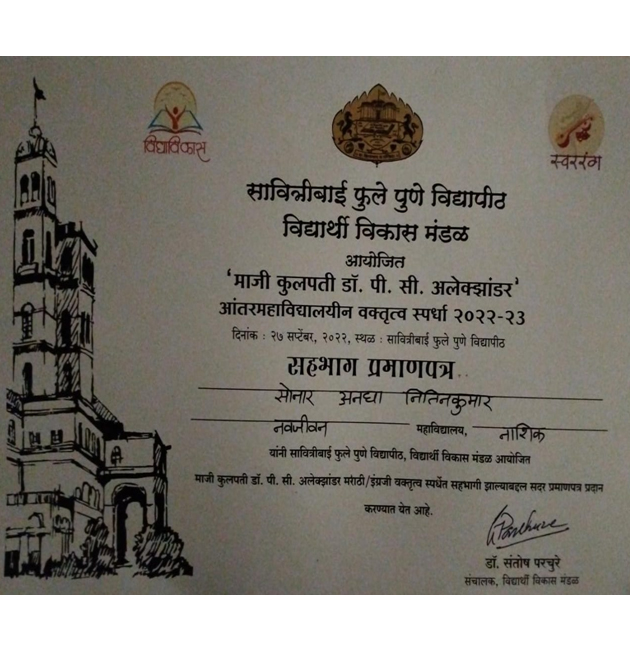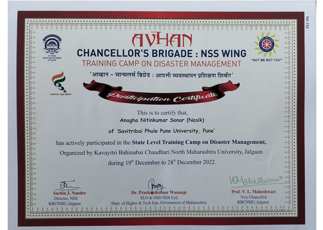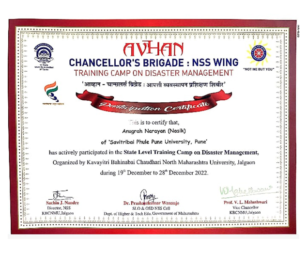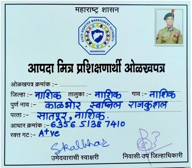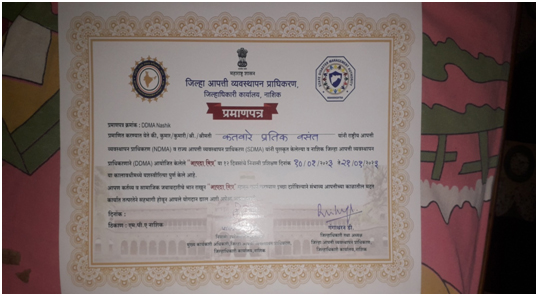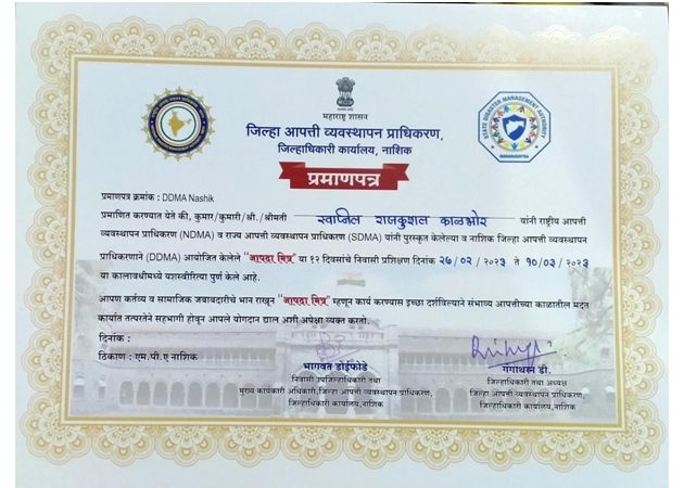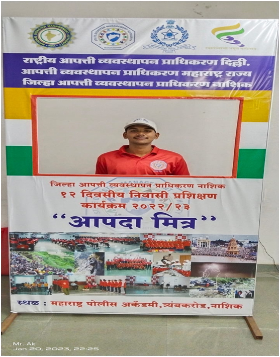 - Aapda Mitra Trainning Programme (Conducted by District Disaster Management Authority (Nashik) and Sponsored by SDMA and NDMA, Conducted Between 10/01/2023 to 21/01/2023.)