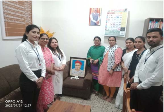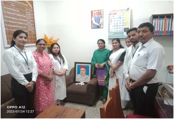 On the occasion of Jayanti Celebration of Bal Gangadhar Tilak (Lokmanya Tilak)& Chandra Shekhar Azad on 23/07/2023 at 12:30 pm. Principal, Teaching, Non-Teaching staff members and Students were present for the programme. Principal madam Dr. Shahista Inamdar& Mr. Anil Deshmukh garlanded the photo ofBal Gangadhar Tilak. All other staff membersMs. Ulka Chauhan, Librarian Mrs. Mangal Patil, Ms. Meenakshi Jadhavhad paid homage to the great personality.
