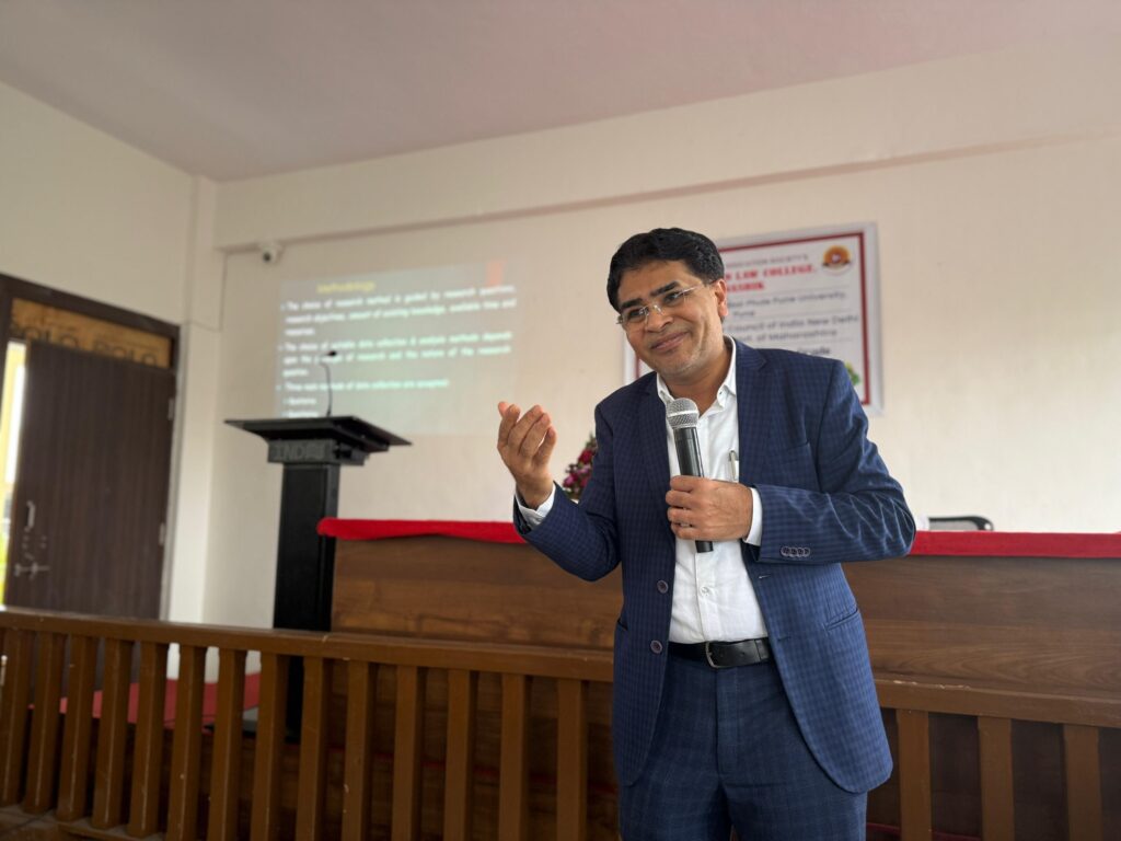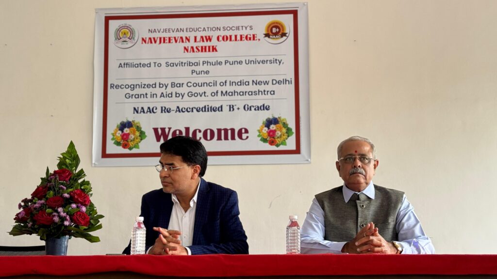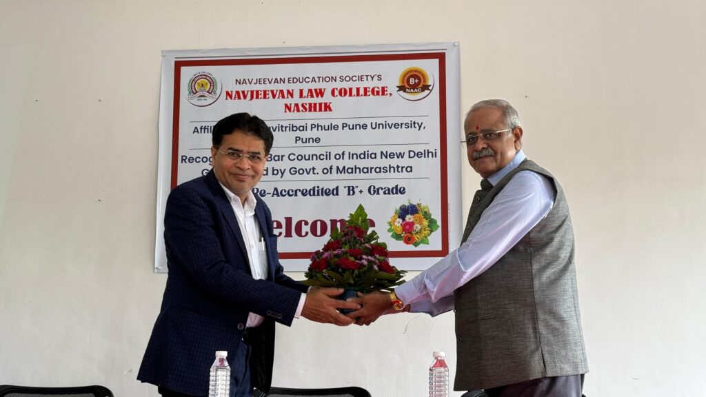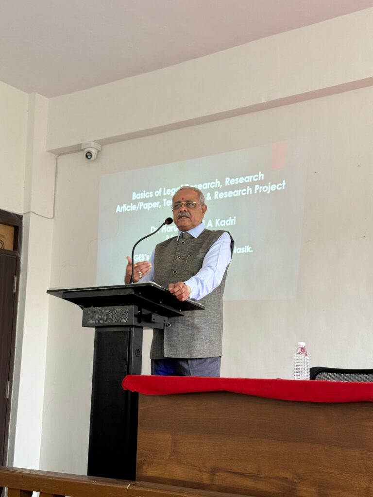 Guest Lecture Organized at Navjeevan Law College, Nashik for LL.M. students on the topic “Principles of Research Methodology” The lecture was delivered by Prof. Dr. H.A. Kadri Sir, Principal of N.B. Thakur Law College, Nashik, on 13 Sept 2025.